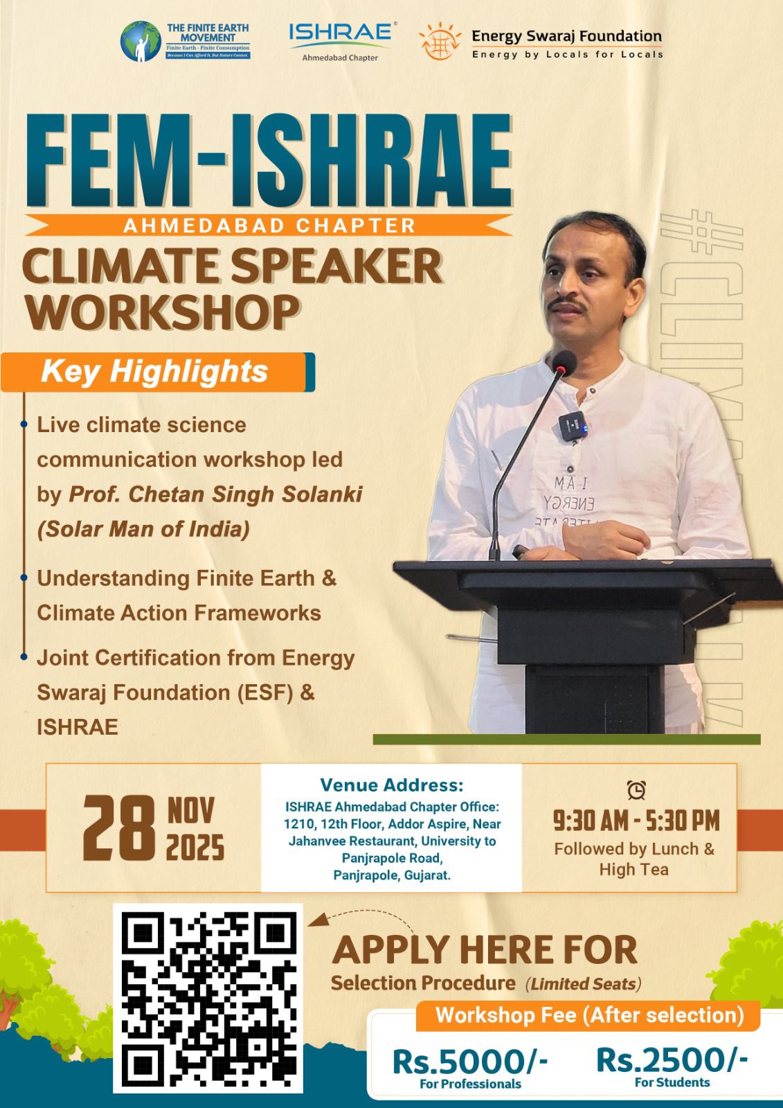 Become a Certified FEM Climate Speaker and get trained by Prof. Chetan Singh Solanki (IIT Bombay, Solar Man of India, Climate Yogi).