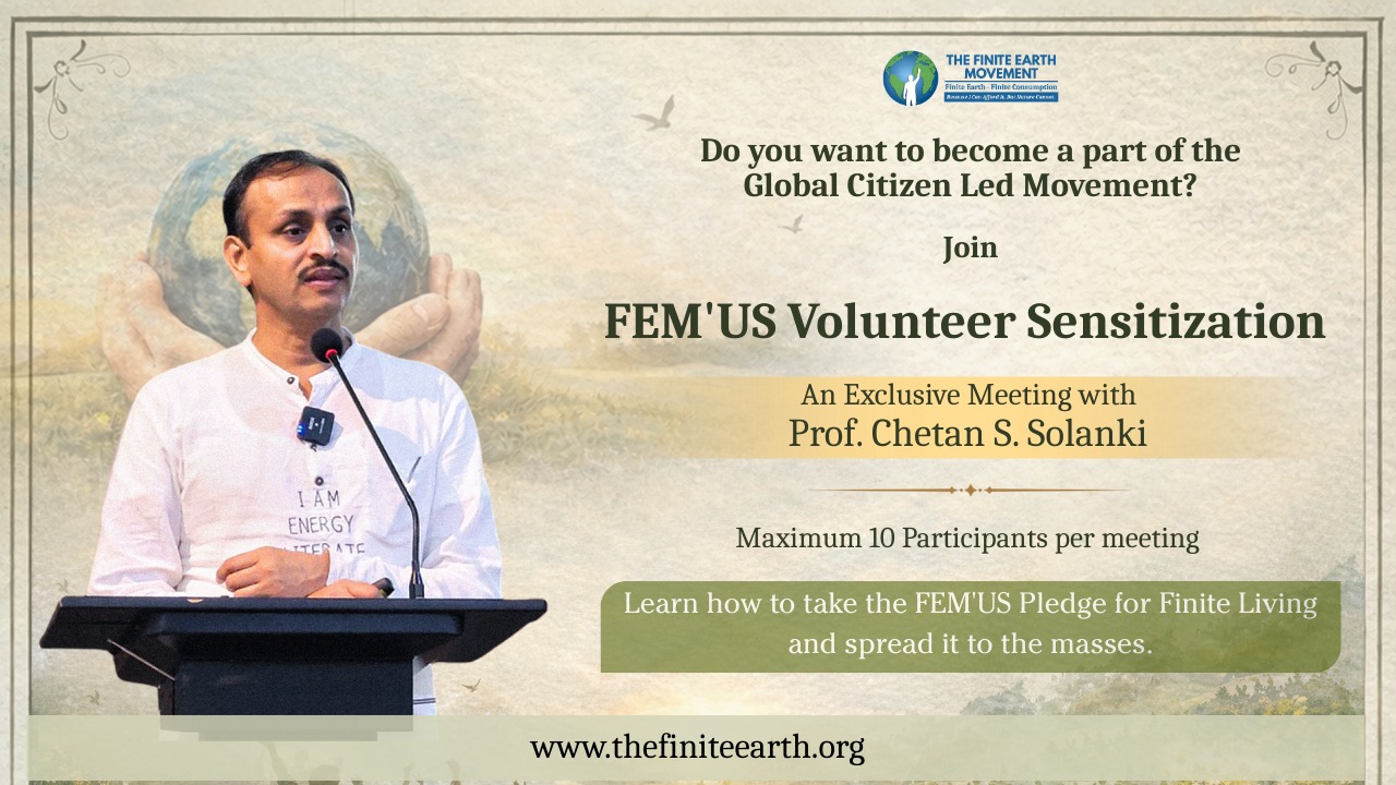 Join the sensitization meeting with Prof. Chetan Singh Solanki to learn how to take the FEM’US Pledge for Finite Living and spread it to the masses.
