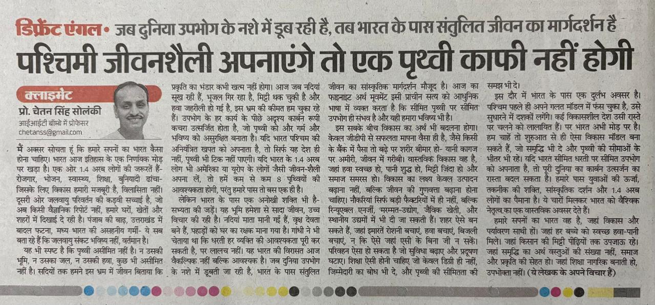 Prof. Chetan Singh Solanki, known as the Solar Man of India, travels across the country in a solar-powered bus spreading awareness about climate change. A former IIT Bombay professor, he leads the Energy Swaraj Yatra and the Finite Earth Movement, urging people to reduce consumption and adopt sustainable living. His message is clear: Earth is finite, and climate action is everyone’s responsibility.